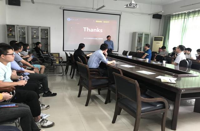 9月28日上午,长江大学物理与光电工程学院总支书记杨鑫、教授张华峰来我校物机学院考察交流,物机学院院长戴伟在二楼会见来宾,学院三位研究生联合培养硕士生导师谈伟伟、李睿、来小禹和40多名物理学、材料物理专业学生参加会见。