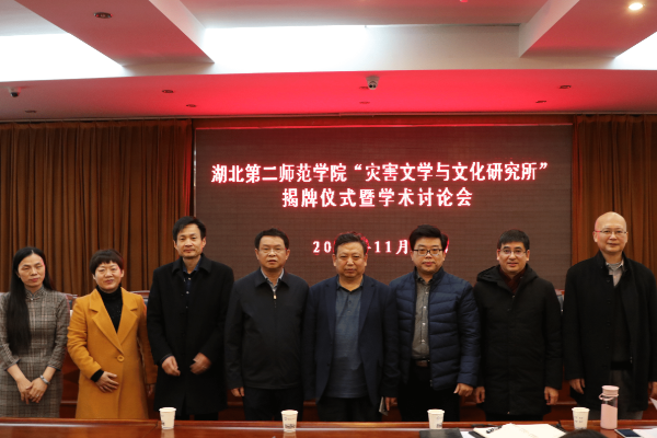 11月28日上午,“灾害文学与文化研究所”揭牌仪式暨学术讨论会在行政楼五号会议室举行。中国人民大学二级教授、博导徐正英,中国社会科学院文学研究所研究员、博导孙少华,扬州大学特聘教授、博导张堂会,湖北大学学报副主编、编审熊显长,我校校长郑军出席,仪式由我校副校长黄颂主持。