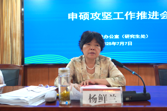 党委书记杨鲜兰作总结讲话时指出,我校申硕攻坚已进入全面冲刺阶段,需进一步凝聚共识、压实责任,举全校之力向硕士学位授予单位建设目标发起总攻。她强调,各专项组要深入研究重点指标,厘清数据统计规则与政策;对已达标的数据成果持续巩固提升,对存在不足的数据加快建设推进;构建申硕共同体,强化协调联动,凝聚工作合力,高质量完成申硕任务。