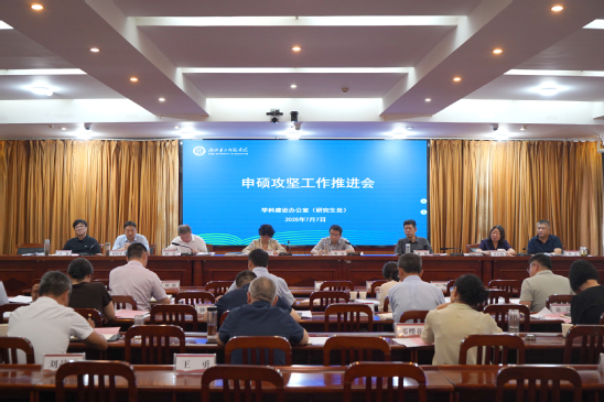 7月7日上午,学校在行政楼五号会议室召开申硕攻坚工作推进会。全体校领导出席会议,校长郑军主持会议。